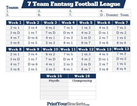 7 Team Round Robin Printable Schedule