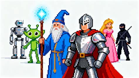8 Bit Character Generator. Web char8.js is a virtual character rom and symbol generator in javascript, providing 8 × 8 character matrices for a wide range of. Choose from thousands of common, rare, super rare and unique elements to.