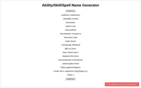 Ability Name Generator. The names have been loosely based on those used in existing. Web together, we've managed to make this spell and ability name generator the biggest random name generator yet, with over 2.7 billion possible combinations!