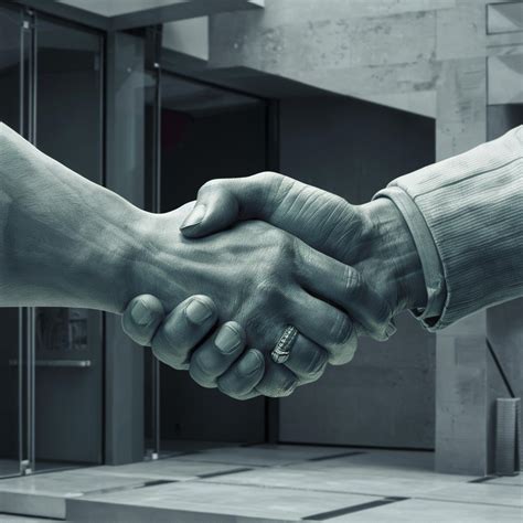 AI Handshake with a Businessman, Neural Network, Office, Commerce