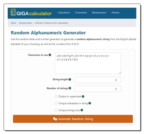 Alphanumeric Characters Generator. Create randomized character sequences containing both letters and. Each string should be characters long (maximum 32 ).
