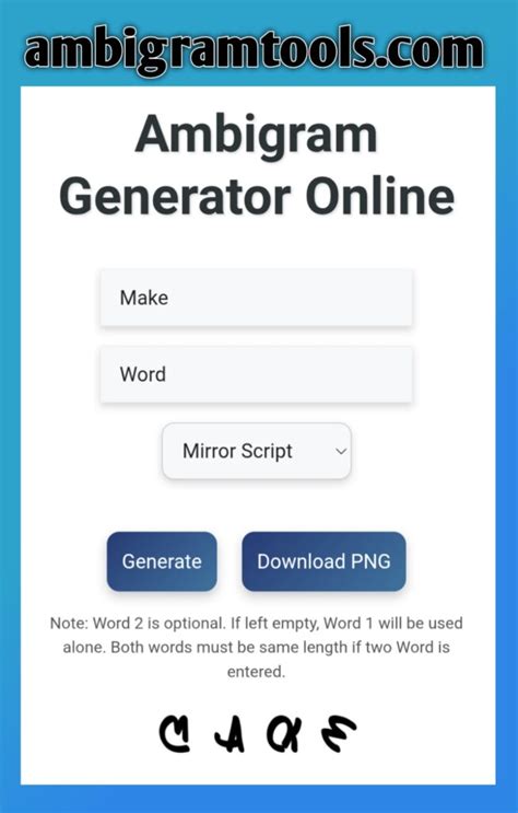 Web ambigram generator is a free intuitive online tool that rapidly converts any word or character set into an ambigram within.