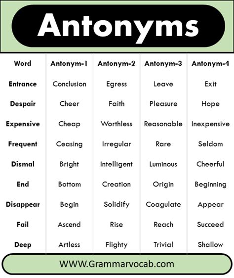 200 Antonyms Words List, Antonyms List with Meaning, Difficult Antonyms