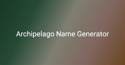 Archipelago Name Generator. Random or own suggested name. This name generator will give you 10 names fit for islands, atolls and other water surrounded land masses.
