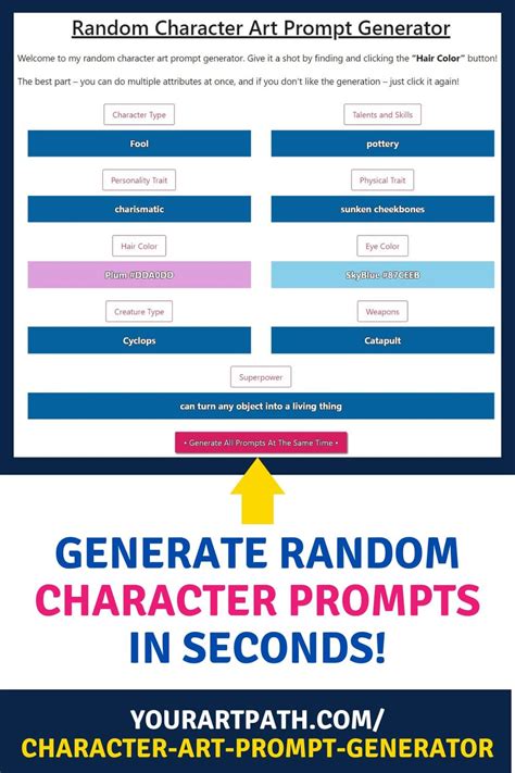 Art Prompt Generator Character. Web character art prompt generator. Web this free to use character design idea generator prompts a broad variety of generic words by fusing different criteria such as.