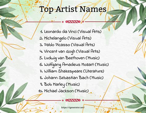 We fully refer to the real names of artists. Web there's thousands of artist names in this artist name generator, so you won't need to be worried that we'll run out anytime soon. Our artist name generator will generate thousands of artsy. Web use our free artist name generator to brainstorm name ideas, or take inspiration from the examples below. March 1, 2023 be the first to comment table of contents good artist names female. These artists have different styles. Find hundreds of random artist name ideas. Web whether you’re a budding painter, or a street artist seeking an edgy pseudonym, our generator for artists will. Web how do i use brandsnag's artist name generator? The artist name generator from brandsnag is easy to use.