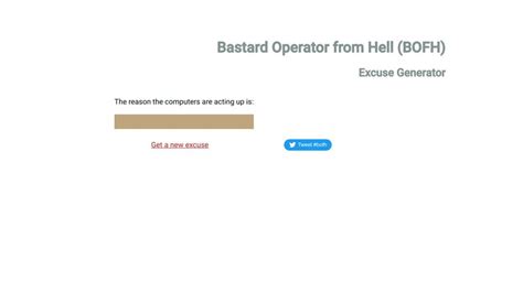 Bofh Excuse Generator. If something fails at work and. Web bofh stands for bastard operator from hell, a system administrator with no tolerance for lusers.