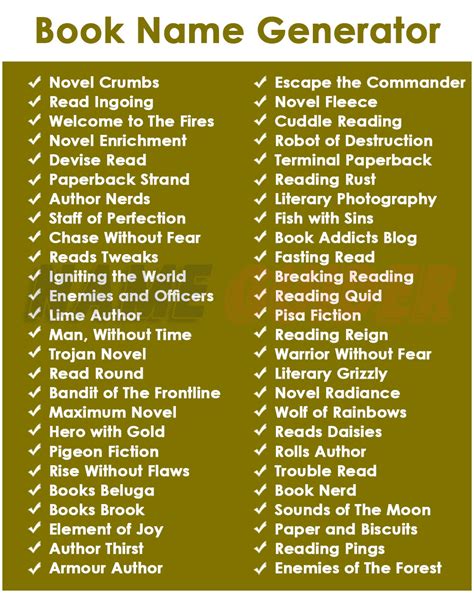 The sun also rises by ernest hemingway. I know why the caged bird sings by maya angelou. Generate a list of potential titles for your book! Then enter it into the book title generator: Web find the perfect title for your nonfiction or fiction book with our book title generator. Web 15 best book titles of all time. Let our ai book title generator do the work for you. Save time and unleash your creativity by generating a unique and captivating title. Web struggling to title your book? East of eden by john steinbeck. Web book title generator.