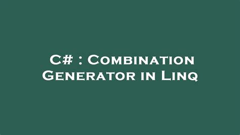C# Combination Generator. Web the demo illustrates how to create and display an (n,k) combination, compute choose(n, k) using the biginteger. Web is it possible to create some linq that generates a list containing all possible combinations of a series of numbers??