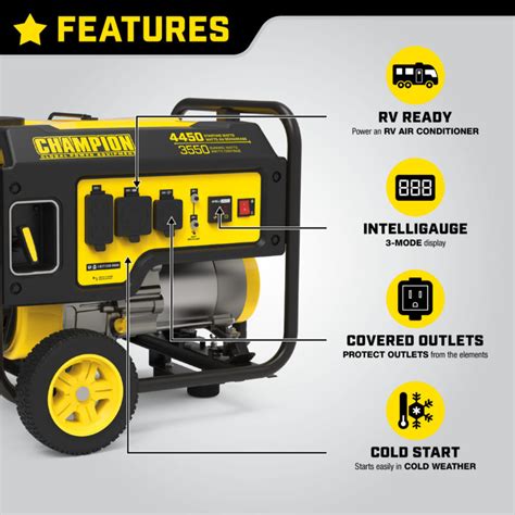 Web to download a copy of a product’s manual and/or parts diagram (s) please enter the exact model number for your champion. Web at 4450 starting watts and 3550 running watts, enjoy up to 10 hours of run time on a full tank of gasoline with a noise level of.