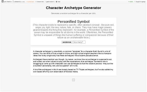 Character Archetype Generator. Generates a random archetype for a character per click. Tuesday 4th april, 2023 ~ what's new?
