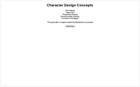 Character Concepts Generator. A tool to help generate ideas for your concept art.