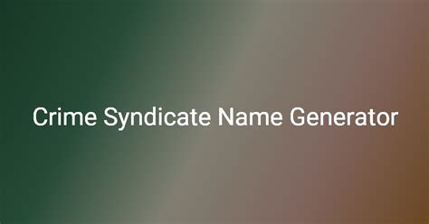 Crime Syndicate Name Generator. Web this gang name generator creates ideas for naming street gangs, mafias, cartels, and other groups. It makes single names like.
