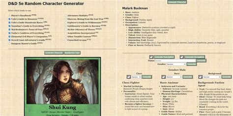 Player's handbook (phb) volo's guide to monsters (vgtm) volo's. Web create a d&d character in minutes with d&d beyond’s free character builder and digital character sheet. Web create a custom character for dungeons and dragons 5th edition with this online tool. Web d&d 5e random character generator select which books to use: Uses phb, dmg and mm books, expansion rules and. Choose from a variety of races, classes,.