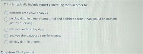 Dbmss Typically Include Report Generating Tools In Order To. Web dbmss typically include report generating tools in order to: