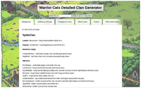 Web generate a detailed warrior cats clan, with allegiances, territory, prey, history and more, using artificial intelligence. Generate a detailed warrior cats clan, with allegiances, territory, prey, history and. Web generate a unique clan name, title, and characters for your warrior cats clan with this online tool.