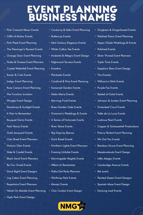 Event Planner Names Generator. Web here are the steps to follow to get the generate event name ideas on namify: Choose your event name keywords.