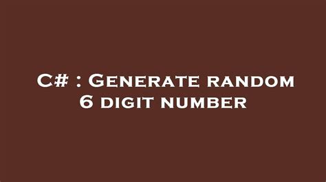 Generate 7 Digit Unique Number In C#. Generate a unique number using random class and. Web datetime.now.tostring ().gethashcode ().tostring ( x );