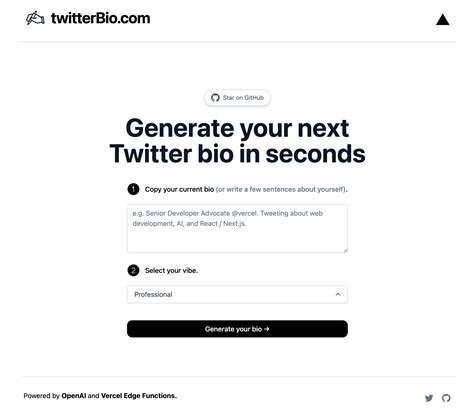 47,118 bios generated so far | in collaberation with foundr.ai. Web generate your next twitter bio using tweetgpt. 47,118 bios generated so far | in collaberation with foundr.ai.