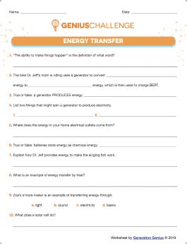 Generation Genius Energy Transfer Answer Key. The transfer of thermal energy that causes a metal spoon. Web 2020 generationgenius.com 1 cross cutting concepts connections to classroom activity energy and matter:
