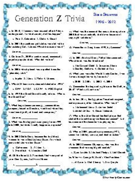 Generation Trivia Questions. Web if you find the study of generations, and society in general, fascinating then you'll love our generation.