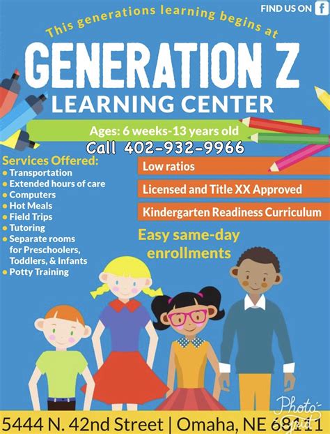Web generation z learning center, omaha, nebraska. Web generation z learning center owned by sharee is a child care center in omaha ne. 683 likes · 21 were here. Web generation z learning center reels, omaha, nebraska. Web 02/10/2023 12/21/2022 ****due to inclement weather, all generation z learning center classes and activities. Web generation z learning center is now enrolling. I have several spots available. Web generation z learning center child care center. Web generation z learning center, omaha, nebraska. It has maximum capacity of 62 children. 659 likes · 1 talking about this · 18 were here.