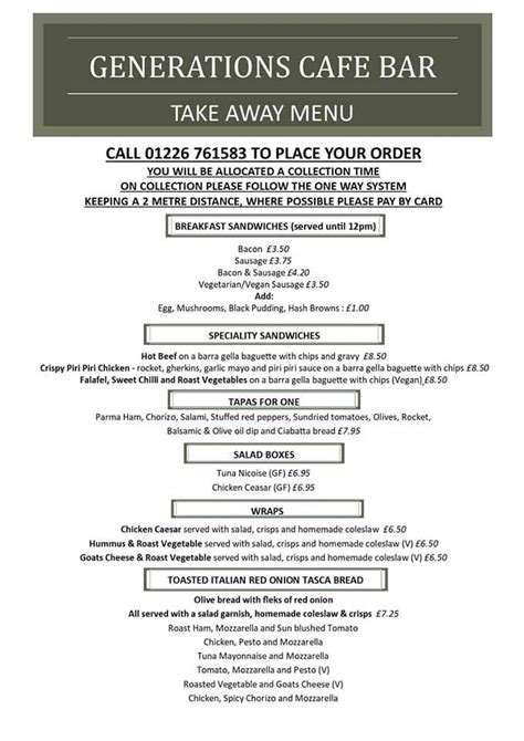 Generations Cafe Bar & Bistro, Penistone Restaurant Reviews, Phone
