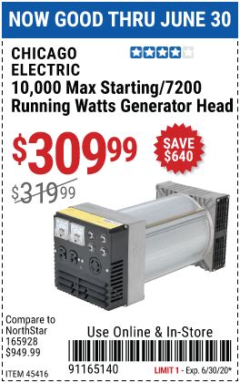 Generator Head Harbor Freight. Web generator heads / item# 165928 northstar belt driven generator head — 10,000 surge watts, 9,600 rated watts, 18 hp required. Web harbor freight 10 kw generator head supplies 30 amps of power at 120 & 240 volts which will operate most common.