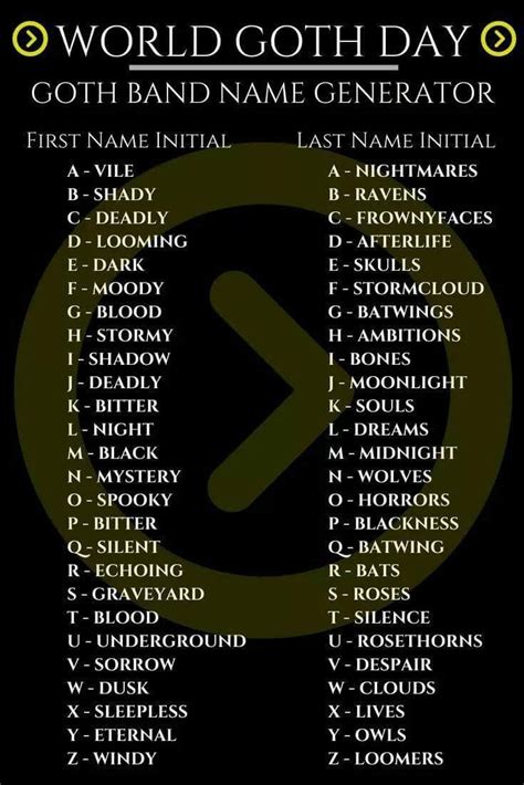 Goth Band Name Generator. Hit the button above as often as you like to. Whether it’s as a rock band, jazz band or k.