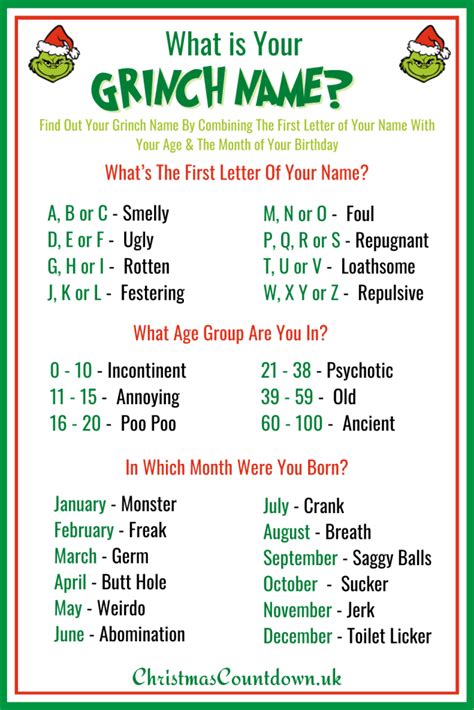 Web check out this free printable grinch bingo. Enter the first letter of. Want to know what your grinch name would be?
