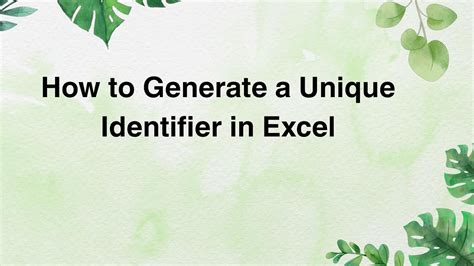 Web one way to generate unique identifiers in excel is by using the concatenate function. This function allows you to. Web often you may want to generate unique identifiers for values in a dataset in excel.