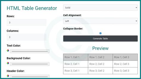 Html Code For Table Generator. Select options and generate the. Web html tables allow to organize and display data in rows and columns on web pages.