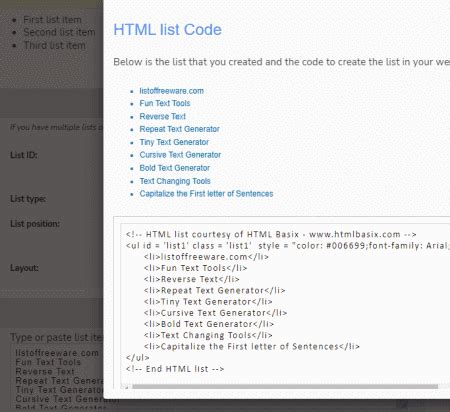 Automatically convert your text into perfectly formatted html code with this code generator. A description list is a list of terms, with a description of each term. This generator will allow you to create a html list of items. Hit the reset button and generate another. Automatically convert your text into perfectly formatted html code with this code generator. Web html list code generator. Html also supports description lists. This tool helps you to quickly generate a simple html list. You can either input your own text to. Web hit generate button and your ul or ol html tag will appear in a textbox. Set the options for the list, then generate the.