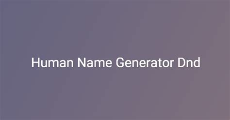 Fantasy Name Generator Dnd Human / This is especially true for our