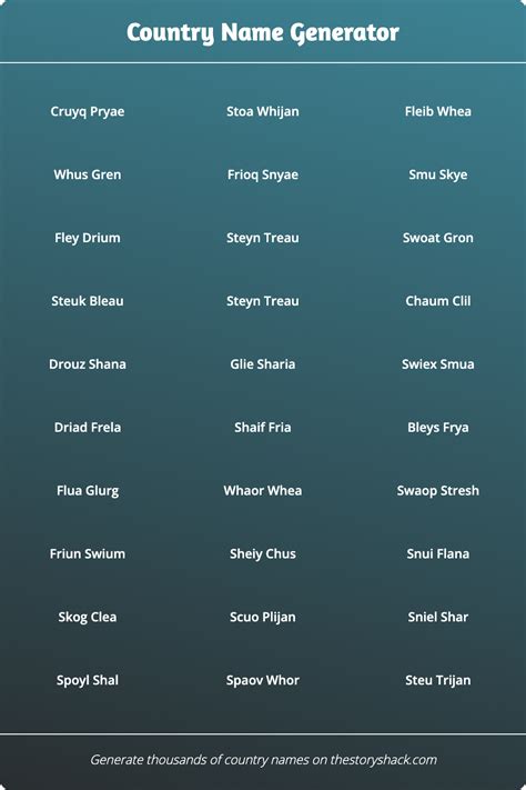 Imaginary Country Name Generator. Web you can either use our country name generator to output a random list of real countries or you can use it to create your. Country names vary a lot, which is often.
