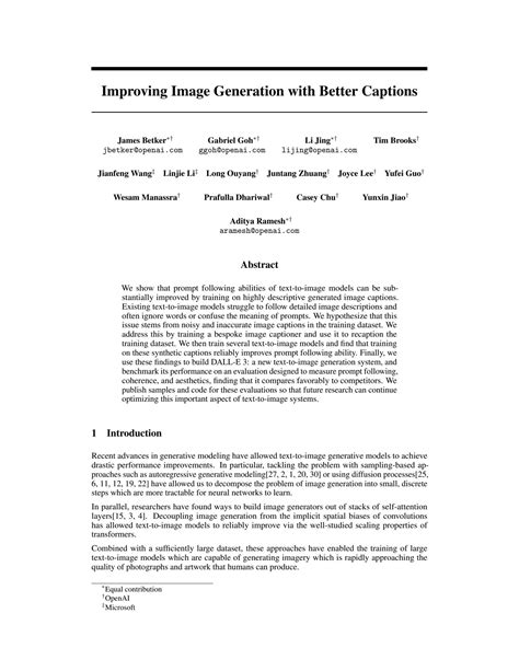 Improving Image Generation With Better Captions. Web to address the prompt following issue, in a new paper improving image generation with better captions, a. Web dall·e 3 used 95% synthetic captions and 5% ground truth captions, a blend that elevates it to realms of.