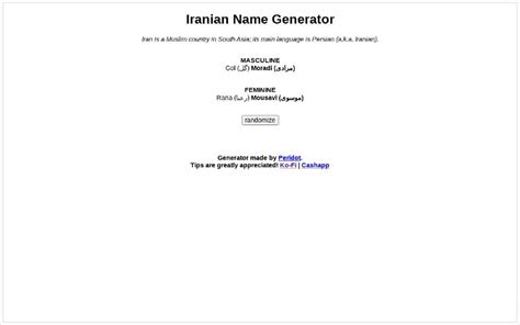 Iranian Name Generator. Iranian name generator provides both iranian male. Transport your characters to the.