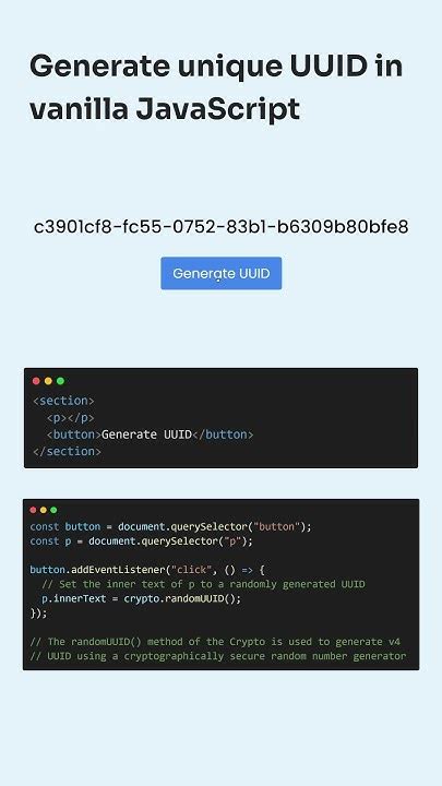 Javascript Generate Uuid. Web 7 answers sorted by: Features generates rfc 4122 compliant uuids.