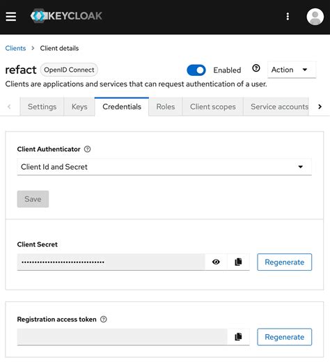 Keycloak Generate Client Secret. Web i tried to create a client in keycloak admin but i was not able to spot client secret. Web the client has a secret, which needs to be known to both the adapter (application) and the keycloak server.