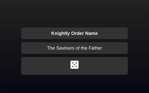 Knightly Order Name Generator. Web the knight order name generator will then create a list of names based on your specifications. The knight order name generator will provide you with a unique name.