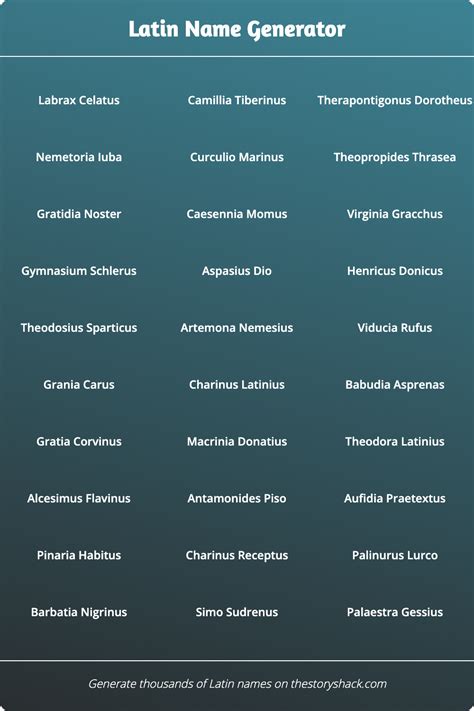 Latin Names Generator. Web generate tons of amazing latin names. 10,000's of combinations are possible, you're bound to find one you like.