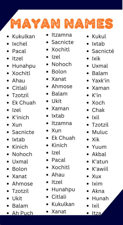 Mayan Name Generator. Web features of the mayan names generator. Our mayan names generator is packed with unique features: