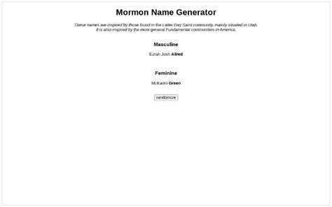 Mormon Name Generator. Web click here to find out more! Web discover thousands of mormon names with name generators' mormon name generator.