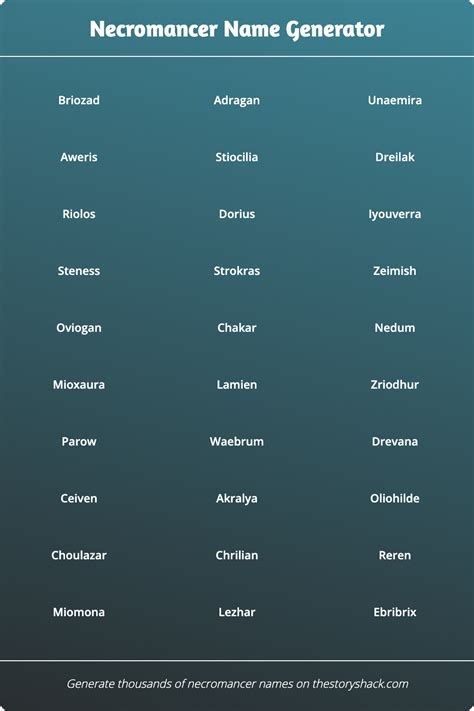 Web choose from hundreds of mysterious and fearsome names, or enter your own name and birth month to get a personalized. Web this name generator will give you 10 random names for necromancers and other evil magi and animators of the dead.
