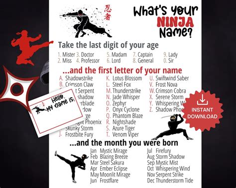 Ninja Name Generator. Web what makes this random ninja name generator better than others? Get your ninja name in a minute!