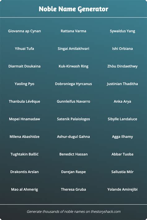 Noble Names Generator. Web generate fantasy noble names with our unique naming tool create your perfect noble title. Whether you wish to join a.