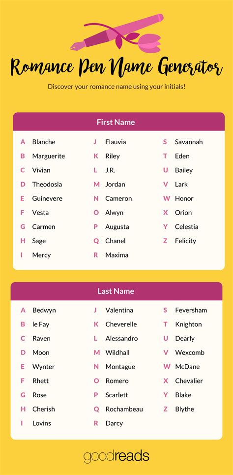 Our pen name generator provides you with over 30,000,000+ random names in different languages and genders. Kickstart your writing career with this pen name generator that boasts over 1 million fake names. Web discover the most iconic pen names to start your writing career. Web we give you options to help you find your perfect name quickly, and we have more names. Web generate pen names for yourself or for your fictional characters using our free app. Name generator is a pen name generator that asks for a lot more information than most—a weapon, your full real name, “an adjective. Web choose from over a million pen names. Male names, female names or both, in batches of up to 500. Our pen name generator provides you with over 30,000,000+ random names in different languages and genders. Each name generator can provide thousands of name ideas!