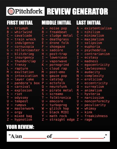 Pitchfork Review Generator. Ai has now made it unnecessary for me to actually have to record, release and promote my music, yet. This is site is strictly for fun and is not authorized by pitchfork or connected with them in.