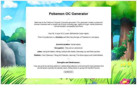 Pokemon Oc Generator. You can make your own character boy / girl in more then 10.000. Web this is a 2d character creator with art from pokemon games.