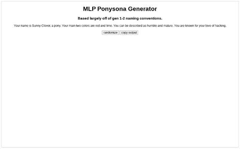 Ponysona Name Generator. Web this name generator will give you 10 names for the my little pony universe. My little pony is a franchise that originated as toys,.